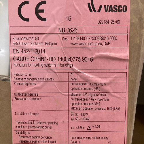 Vasco Carre CPHN1-RO radiator 775 hoog x 1400 breed - wit